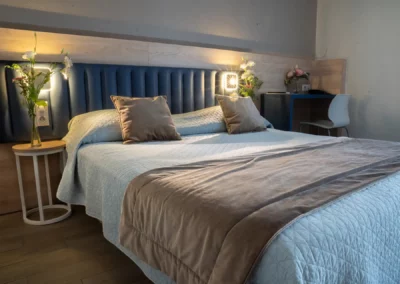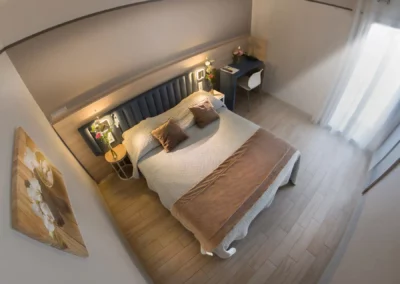 Family room of approximately 25 m², accommodating up to 4 guests with a 160 cm double bed and a 140 cm sofa bed.
